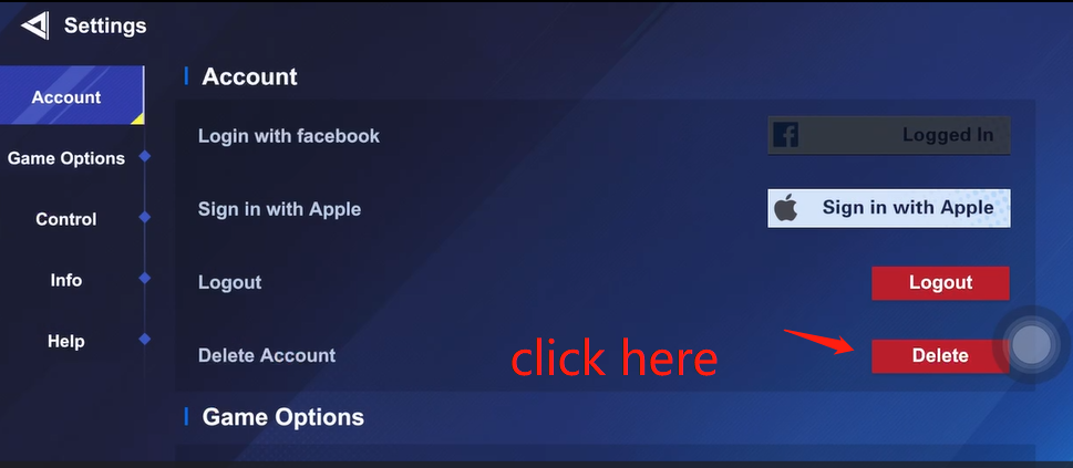 2. Select delete Account from Account.
